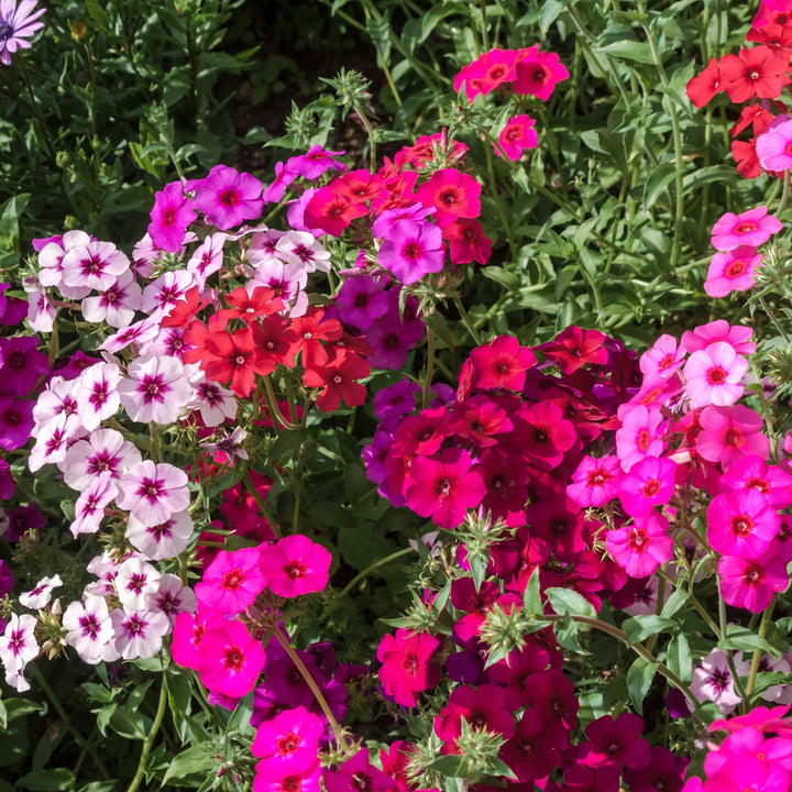 Le Phlox 'Mixte Drummondii' est une annuelle d’héritage qui séduit par sa large palette de couleurs, dont des nuances rares de bleu lavande et bleu foncé, ainsi que des tons de rose, chamois et blanc. Les plantes compactes de 20 cm de hauteur produisent de grands fleurons éclatants, souvent ornés d’yeux contrastés. Avec un étalement pouvant atteindre 35 cm, ce phlox est parfait pour les bordures, massifs et conteneurs. Sa floraison généreuse illumine les jardins dès le début de l’été, ajoutant une touche vibrante et charmante à vos aménagements extérieurs.