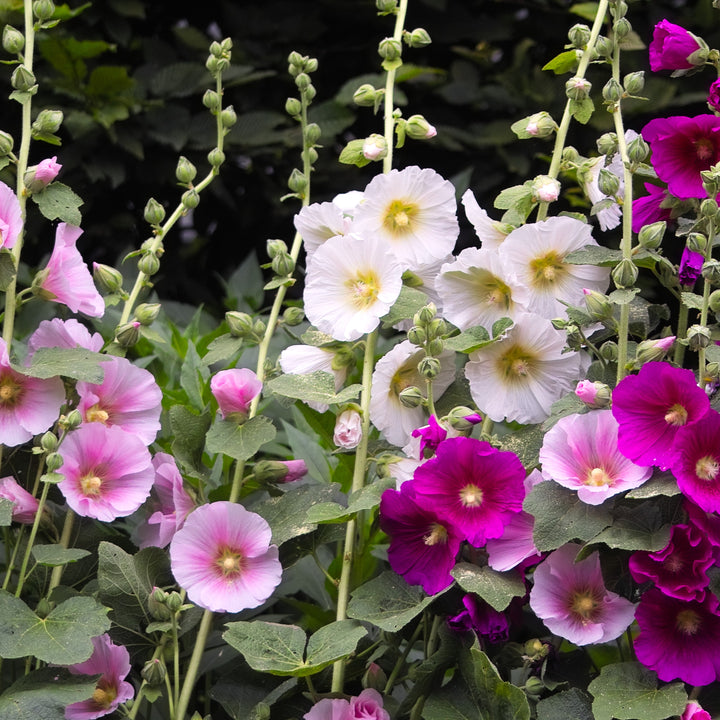 Rose trémière 'Halo Mixed' (Alcea rosea), proposé par Semences OSC.