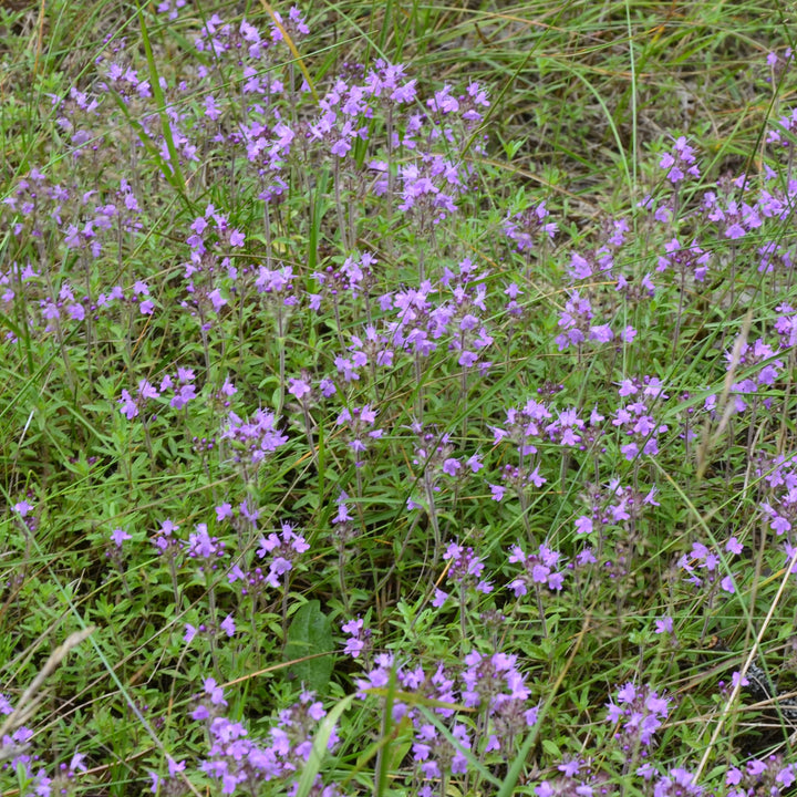 Le thym rampant est une vivace robuste et aromatique, idéale pour les endroits secs et ensoleillés. Avec ses petites fleurs violettes à blanches et son agréable parfum citronné, il s’adapte parfaitement entre les pierres de patio ou en rocaille. Poussant jusqu'à 15 cm de hauteur, il est également apprécié des abeilles comme plante fourragère de premier ordre. Une option durable pour remplir vos espaces extérieurs avec beauté et praticité.
