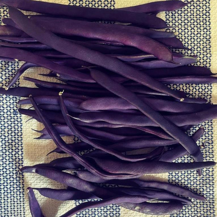 Atteignant une hauteur de 150 à 180 cm, cette variété est idéale pour les treillis ou les supports verticaux, apportant une touche décorative et productive au potager. Ses longues gousses pourpres, de 12 cm, accompagnées de feuilles vert foncé, offrent une production abondante tout au long de la saison.