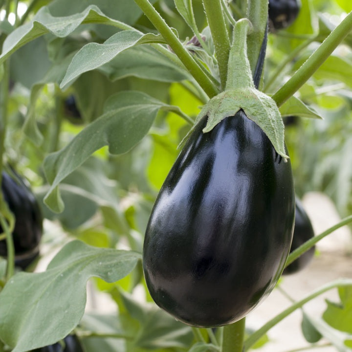 Variété qui offre de beaux fruits allongés, lisses et violets foncés à la chair tendre et savoureuse. Idéale pour les plats méditerranéens, elle apprécie la chaleur, un sol riche et un arrosage régulier. Cultivée en pleine terre ou en pot, elle a besoin de chaleur et de soleil pour s’épanouir pleinement.