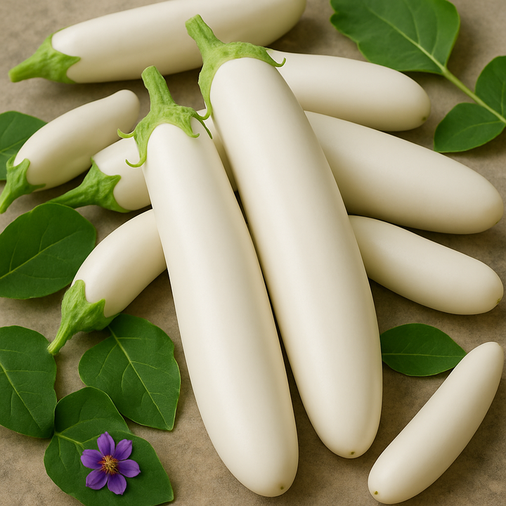 Variété miniature blanche, très hâtive et parfaite pour les petits espaces ou la culture en pot. Elle produit de nombreux fruits fins, tendres et sans amertume, même récoltés un peu plus gros. Sa peau blanche lustrée et sa production généreuse en font un choix prisé pour les jardiniers gourmets et les amateurs de diversité au potager.