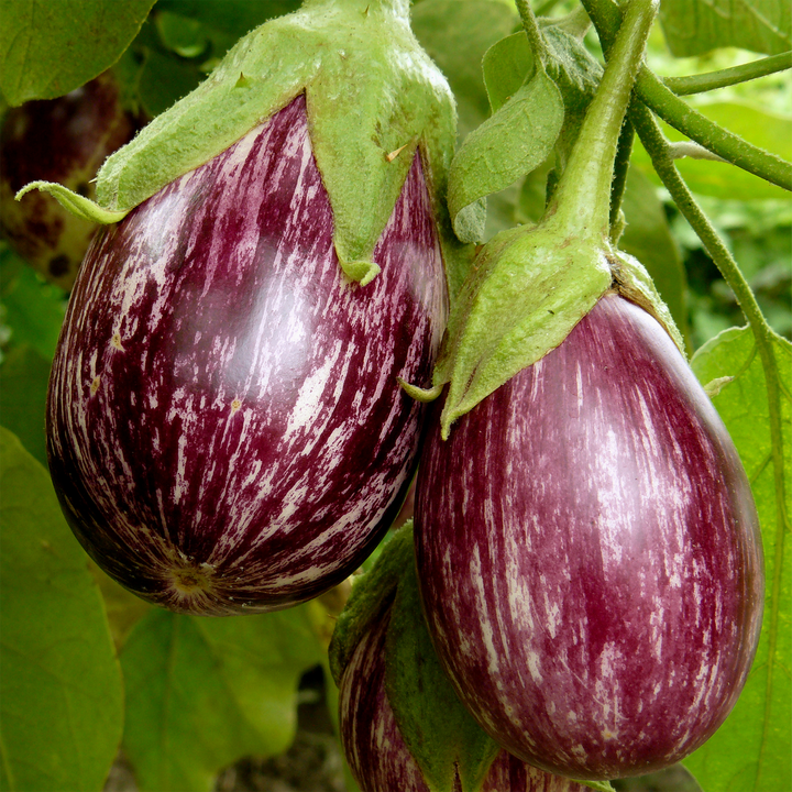 Séduit par son port compact et ses fruits ovoïdes aux magnifiques rayures violettes et blanches. Idéale en pot comme en pleine terre, cette variété ornementale et productive offre des fruits tendres et savoureux, parfaits pour la cuisine estivale. Son allure élégante et son excellent rendement en font une favorite des petits jardins et terrasses ensoleillées.