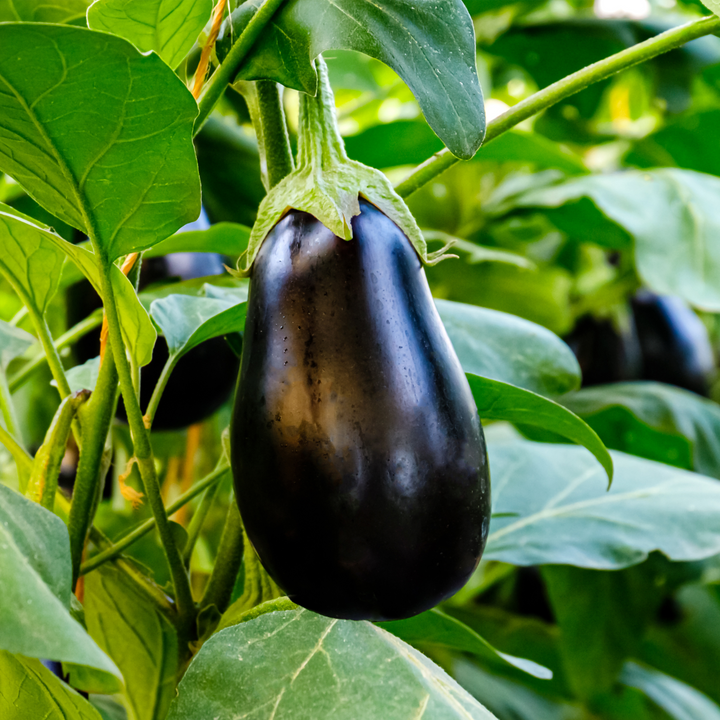 Variété compacte et très précoce, spécialement développée pour la culture en pot. Elle produit de nombreux petits fruits ronds à la peau noire lustrée, sur un plant dense et décoratif. Sa productivité et sa taille en font une excellente candidate pour les balcons, terrasses ou petits jardins ensoleillés.
