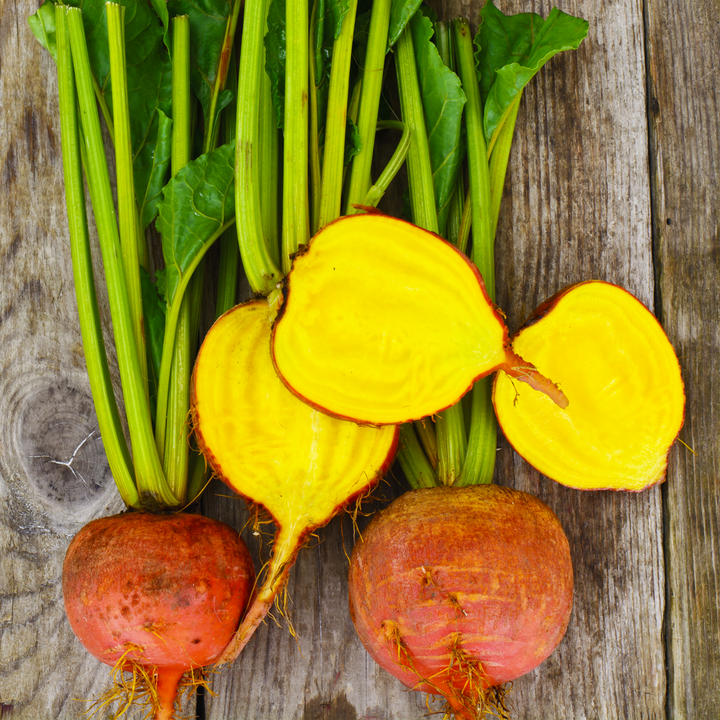 Variété originale à la chair dorée et au goût doux, moins terreux que la rouge traditionnelle. Elle conserve sa belle couleur à la cuisson et ne tache pas, ce qui en fait un choix populaire en cuisine. Facile à cultiver, elle pousse rapidement dans un sol léger et meuble, et peut être semée en succession pour des récoltes échelonnées.