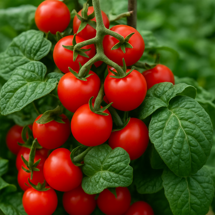 variété ultra compacte et naine, parfaite pour les petits pots, les balconnières et les rebords de fenêtre. Elle produit une belle quantité de petites tomates rouges brillantes, sucrées, juteuses et savoureuses. Aucun tuteur requis, presque pas d’entretien, et une récolte généreuse tout au long de l’été! C’est la variété idéale pour les jardiniers urbains et les petits espaces.