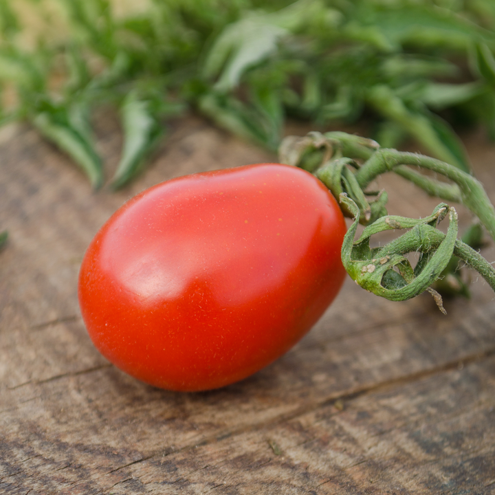 variété ancienne et indéterminée, connue pour sa forme unique de petite poire et sa robe rouge éclatante. Sa chair est juteuse, sucrée et pleine de caractère, parfaite pour les salades, les conserves ou les plateaux de tomates multicolores. Très productive et ornementale, elle forme de longues grappes et nécessite un bon tuteurage.