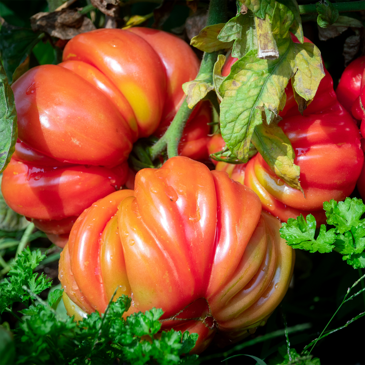 variété hybride issue du croisement entre deux tomates anciennes, combinant la saveur authentique d’une tomate rose héritage avec la vigueur, la précocité et la résistance d’un hybride moderne. Ses fruits sont gros, charnus, juteux, d’un rose éclatant, avec une texture fondante et une douceur exceptionnelle. Parfaite pour les salades, les sandwichs gourmets ou tranchée simplement avec un filet d’huile d’olive. Productive, de type indéterminée, elle nécessite un bon tuteurage et beaucoup de soleil pour révéler tout son potentiel.