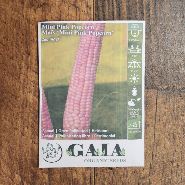 Le Maïs ‘Mini Pink Popcorn’ (Zea mays) du semencier Gaia est une variété annuelle attrayante et polyvalente, idéale pour la production de popcorn maison et les décorations automnales.