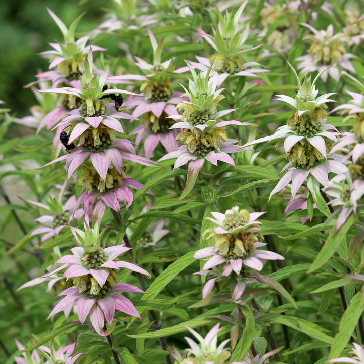 Monarde Ponctuée (Monarda punctata), proposées par le Semencier Northern wildflowers, est une plante vivace rustique, connue pour ses fleurs fascinantes en étages et ses bractées colorées qui oscillent entre le rose et le pourpre.