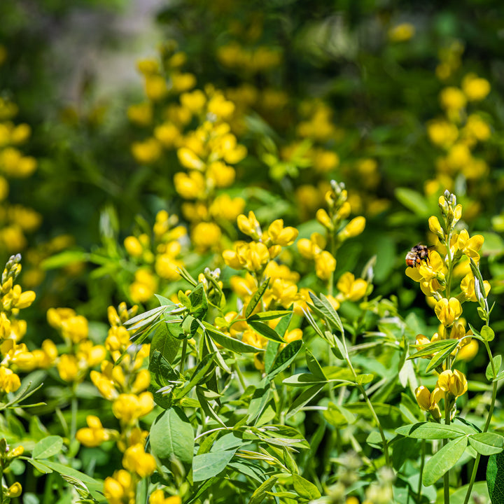 Le baptisia des teinturiers (Baptisia tinctoria), ou « Yellow False Indigo », proposé par Northern Wildflowers, est une vivace lumineuse qui ajoute une touche de jaune vif au jardin de juin à août. Ressemblant à un petit arbuste, cette plante rustique tolère bien les conditions difficiles et enrichit le sol en fixant l'azote, ce qui en fait un excellent choix pour les jardins de permaculture. Elle attire les pollinisateurs et sert de plante hôte pour le lutin givré, le papillon soufré orange et l'hespérie indigo sauvage.