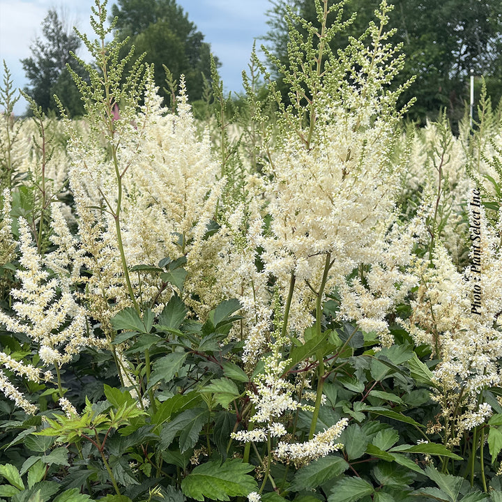 Variété populaire qui a fait ses preuves. Elle produit des fleurs d'un blanc pur réparties sur de longues panicules plumeuses et duveteuses. Tolère l'ombre totale. Attire les pollinisateurs.