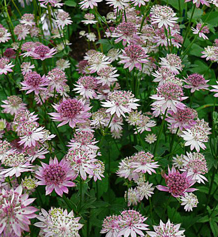 Unique et inhabituel. Produit des masses de grandes fleurs rose argenté, en forme de coussinets, entourées de bractées. Forme une touffe avec un beau feuillage dentelé et une profusion de fleurs bien au-dessus sur des tiges robustes et filiformes. Se plaît dans un endroit ombragé, à l'abri du soleil brûlant de l'après-midi.