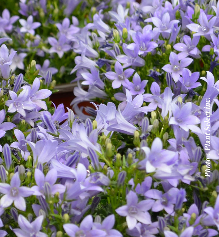 La plus rampante des campanules, souvent utilisée pour remplir les interstices entre les dalles et les pierres plates. Elle produit une multitude de petites fleurs étoilées bleu-mauve. Elle aime les sols frais. Enlever les fleurs fanées permet de prolonger la floraison. Syn. : C. portenschlagiana