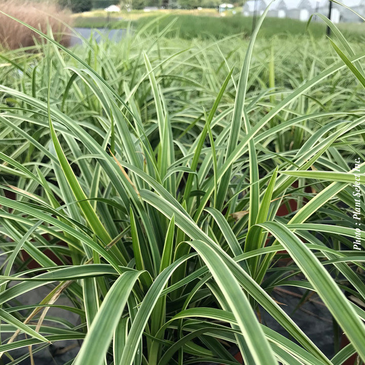 Le Carex ‘Ice Dance’ est une variété persistante au feuillage vert foncé bordé de blanc crème, formant une touffe élégante et légèrement arquée. Idéal pour les scènes d’ombre fraîche, il illumine les bordures et potées avec douceur toute l’année.
