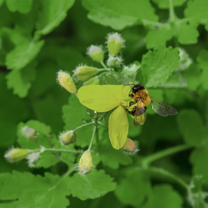 Vivace herbacée au feuillage découpé vert bleuâtre et à la floraison jaune vif, la Chélidoine est reconnue depuis l’Antiquité pour sa sève orangée, traditionnellement utilisée sur les verrues. Elle pousse facilement dans les coins ombragés et se naturalise bien dans les jardins de plantes médicinales.