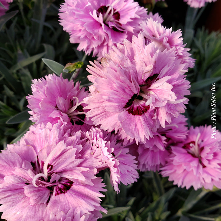 Petite variété qui forme un beau coussin tapissant de feuillage bleuté. Ses fleurs doubles à pétales frangés rose lavande, à cœur magenta, se dressent légèrement au-dessus du feuillage. Dégage un parfum agréable.