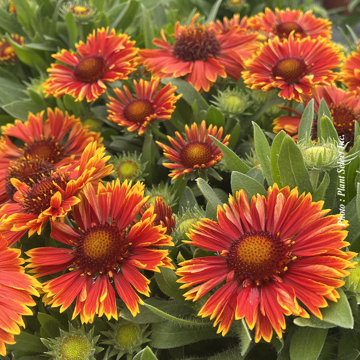 Grandes fleurs rouge orangé aux pointes jaunes, portées par des tiges robustes, au dessus du feuillage légèrement duveteux. Plant compact qui fleurit toute la saison. Préfère les sols pauvres, tolère la sécheresse et la chaleur.