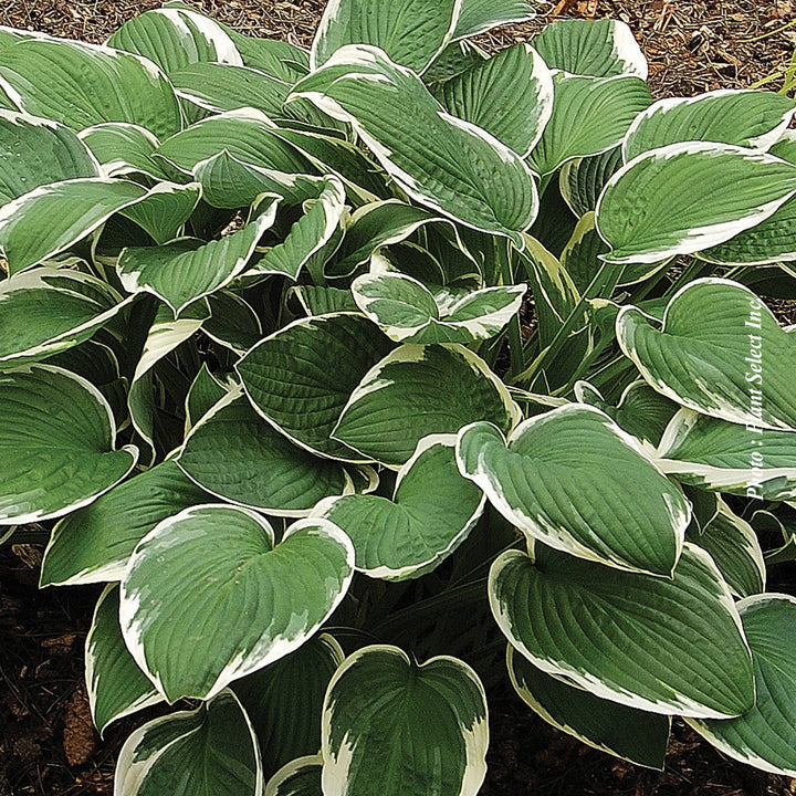 Plante intéressante pour la plantation en bordure ou en alignement. Feuilles en forme de cœur, vertes, finement marginées de blanc. Les fleurs lavande apparaissent sur des tiges de 75 cm. Croissance rapide pour un grand hosta. Tolère le soleil direct.