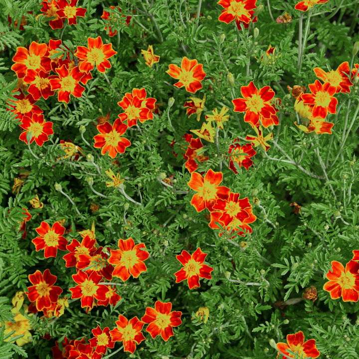 Tagète naine très décorative, la variété Paprika offre des fleurs rouge brique aux reflets dorés. Comestible et parfumée, elle est aussi un excellent répulsif naturel au potager.