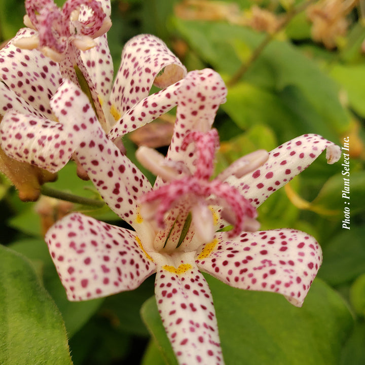 Les feuilles sont tachetées de brun au printemps. Les fleurs, qui ressemble à des minis lis, sont maculées de pourpre foncé. Elles apparaissent en fin d'été et au début de l'automne. Les tiges tendent à s'arquer, ce qui lui confère un bel effet, surtout en grand massif.