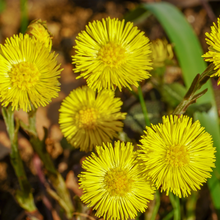 Vivace rustique aux fleurs jaune vif semblables à de petits pissenlits, le Tussilage fleurit avant même l’apparition de ses feuilles. Connu depuis l’Antiquité pour apaiser la toux et les affections respiratoires, il pousse facilement en sol pauvre et se naturalise rapidement.