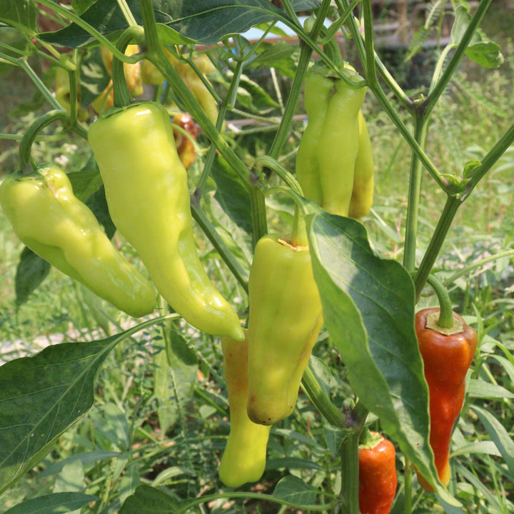 Le piment doux 'Banane' est une variété prolifique et savoureuse, idéale pour ajouter une touche sucrée et légèrement piquante à vos plats. Ses fruits cylindriques de 18 x 4 cm mûrissent du jaune vif au rouge éclatant, offrant une saveur douce parfaite pour les salades, sandwiches, pizzas ou plats grillés. Ce piment est facile à cultiver et assure une production abondante tout au long de la saison.