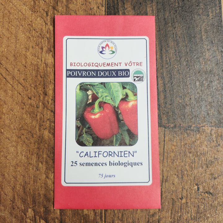 Le poivron doux 'California Wonder' est une variété biologique classique et polyvalente, idéale pour les jardiniers débutants et expérimentés. Avec ses fruits charnus passant du vert au rouge à maturité, il allie beauté et saveur. Sa chair douce et sucrée en fait un ingrédient parfait pour les salades, les ratatouilles, les plats farcis ou encore les grillades.