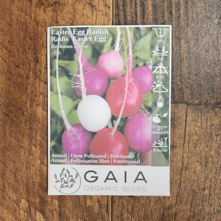 Le Radis 'Easter Egg' (Raphanus sativus) du semencier Gaia est une variété multicolore, prisée pour son apparence ludique et sa facilité de culture.