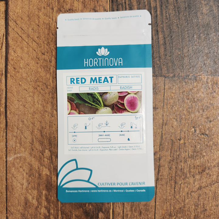 Idéal pour enrichir les plats avec une touche de couleur et de croquant, le radis 'Red Meat' est adapté à la culture en jardin potager ou en conteneur. Préférant les sols bien drainés et riches en matière organique, il prospère en plein soleil avec une irrigation régulière pour un développement optimal.