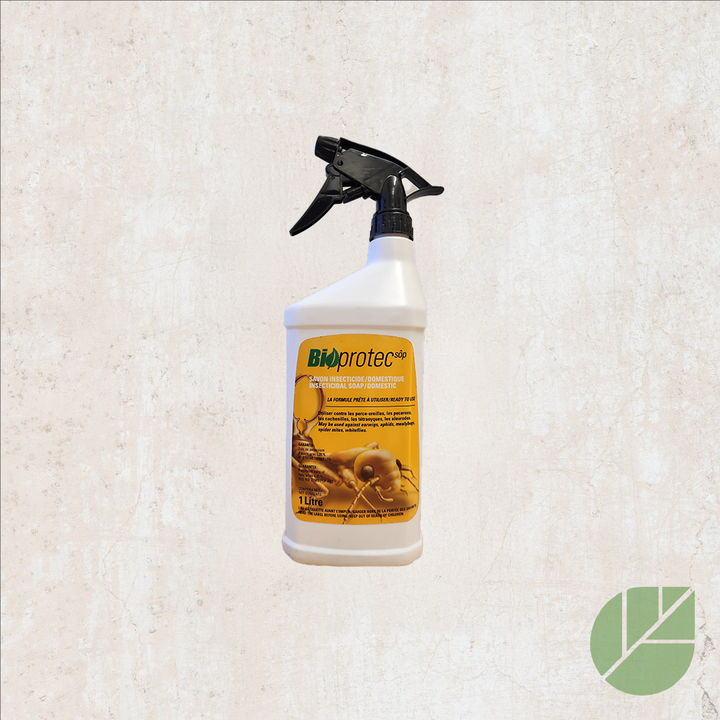 Le savon insecticide BioProtec est une solution naturelle et efficace pour éliminer les insectes nuisibles présents sur vos plantes. Formulé à base d’ingrédients biodégradables, il agit par contact pour neutraliser rapidement les pucerons, aleurodes, cochenilles et acariens sans nuire à l’environnement. Prêt à l’emploi, il s’applique facilement sans dilution et peut être utilisé sur une large variété de plantes.