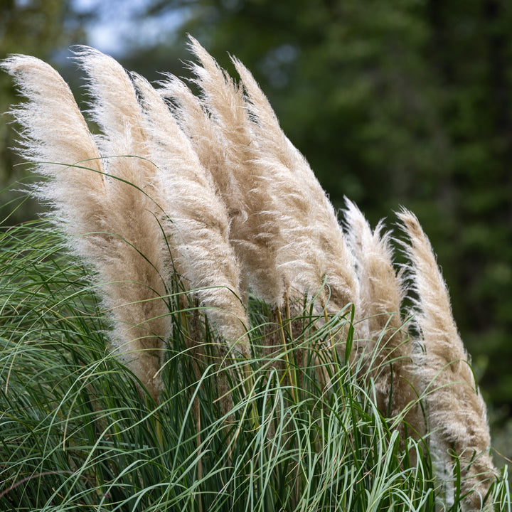 Cette herbe ornementale impressionne par ses grandes touffes de 2 à 3 mètres de haute, ornées de panaches blancs soyeux à la fin de l'été. Originaire d'Argentine, cette plante vivace est rustique à partir de la zone 7. Dans les zones plus froides, elle nécessite un hivernage en intérieur. Notez qu'elle a rencontré 3 à 4 ans à atteindre sa pleine taille, mais le résultat vaut l'attente!