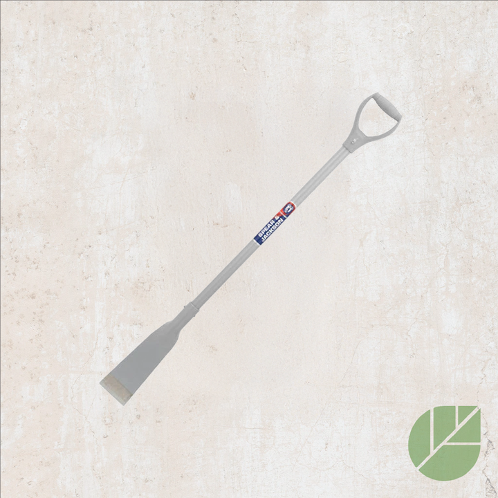 Sa tête en acier au carbone forgé ultra robuste, équipée d’une lame large de 100 mm (4"), permet une pénétration facile dans le sol et une coupe efficace des racines. Son arbre tubulaire en acier assure une solidité exceptionnelle, tandis que sa poignée ergonomique inclinée offre un confort optimal et réduit l’effort nécessaire à l’utilisation.