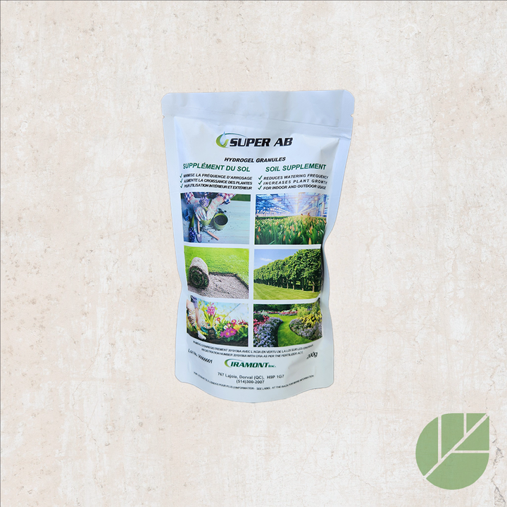 Le Super AB Hydrogel est un polymère synthétique en granules, conçu pour améliorer la rétention d'eau dans le sol. En absorbant et en libérant l'eau sur demande, il réduit la fréquence d'arrosage de jusqu'à 50 %, tout en favorisant une croissance saine des plantes. Ce produit est idéal pour une utilisation en intérieur et en extérieur, notamment dans les sols légers ou les surfaces inclinées, où l'eau a tendance à s'écouler rapidement. En améliorant l'aération du sol et en limitant le lessivage des engrais et nutriments, Super AB Hydrogel contribue à un environnement optimal pour les racines, favorisant un développement plus robuste des plantes.