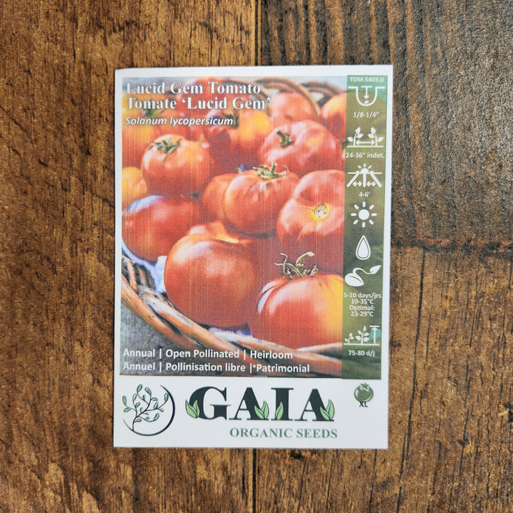 La Tomate 'Lucid Gem' (Solanum lycopersicum) du semencier Gaia est une tomate de mi-saison à mi-fin, reconnue pour sa chair charnue, ses couleurs éclatantes et son goût exceptionnel.