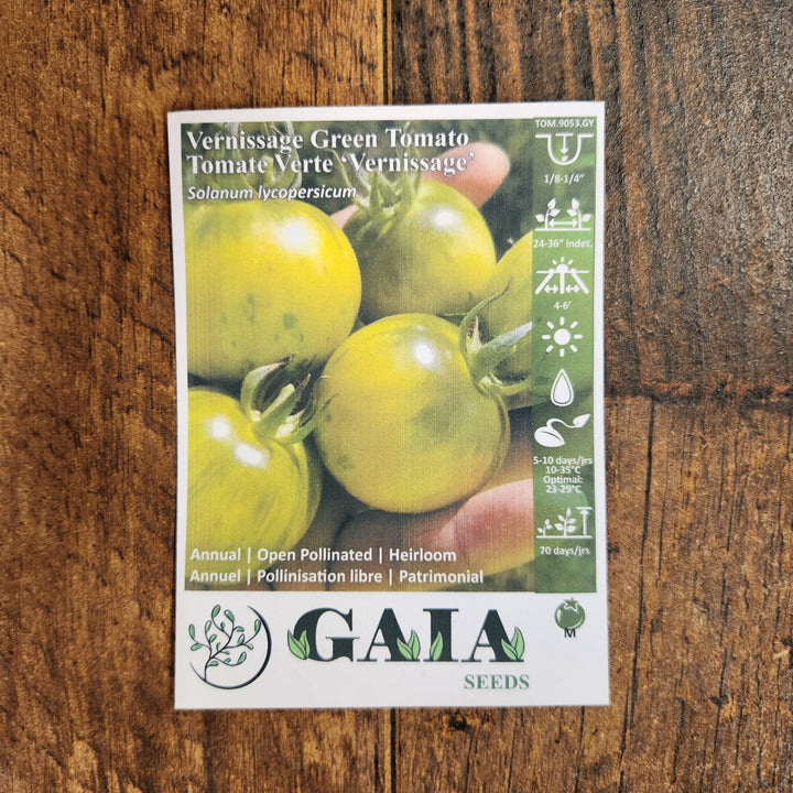 La Tomate 'Vernissage Green' (Solanum lycopersicum) du semencier Gaia est une variété unique et esthétique, parfaite pour les jardiniers souhaitant cultiver des tomates originales.