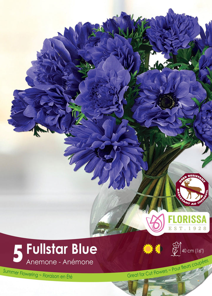 🌼 Anémone ‘Fullstar Blue’ (5 bulbes) – Floraison double bleu violet & charme sculptural ✨ Proposée par Van Noort