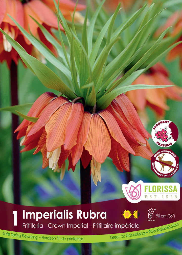 🌼 Fritillaria imperialis ‘Rubra’ (1 bulbe) – Couronne de feu sous le ciel d’avril ✨ Proposée par Van Noort